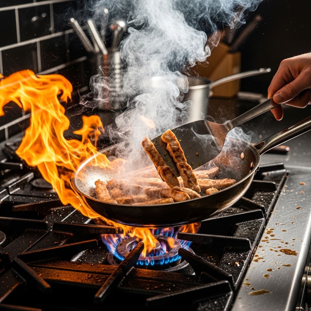 조리 핵심: 센 불 + 고기 먼저