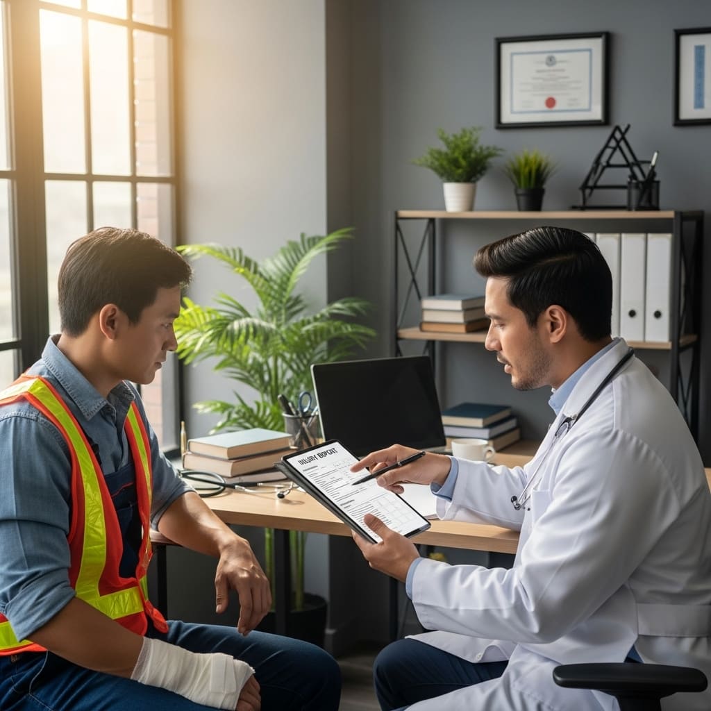 먼저 업무 중 사고가 발생하거나 직업병이 의심되면 병원에서 진료를 받아야 한다. 이때 병원에서 산재 진단서 또는 소견서를 발급받는다.