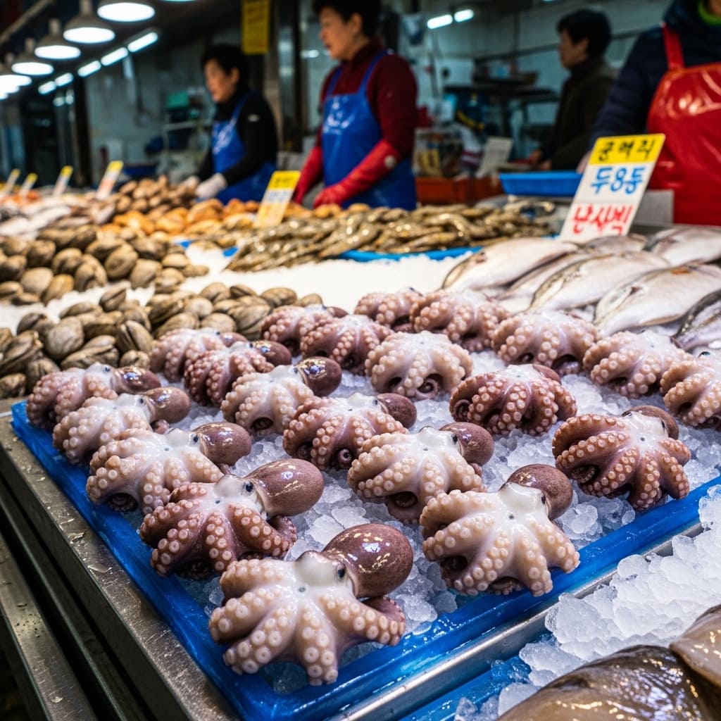- 주꾸미와 소라 같은 해산물
